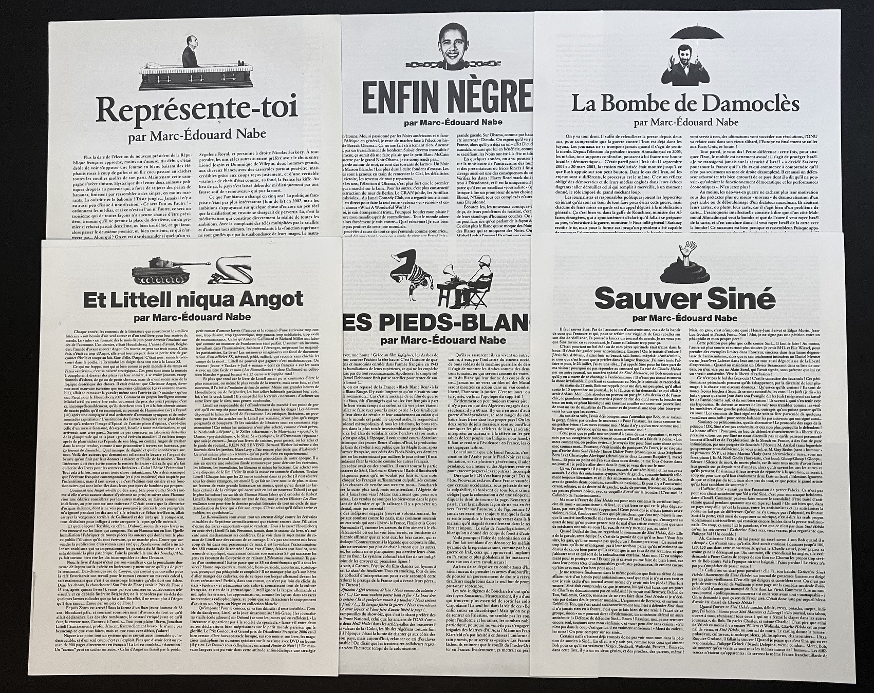 Marc-Edouard NABE. 2007/2009. 6 tracts (sur 8 parus). 29,5 x 21 cm. Documents épuisés et rares.